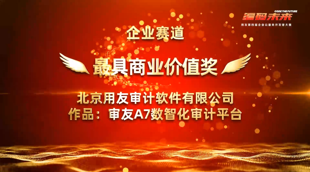 編碼未來—用友第四屆企業(yè)云服務開發(fā)者大賽作為一年一度的開發(fā)者盛事,面向企業(yè)服務領域開發(fā)者,立足企業(yè)實際業(yè)務需求,基于用友 BIP、用友低代碼開發(fā)平臺YonBuilder,推動面向企業(yè)服務領域的SaaS快速開發(fā)與創(chuàng)新成果轉化,共計399支參賽團隊參與了本次大賽。12月9日,決賽結果震撼公布,我司提交的參賽作品“審友A7數(shù)智化審計平臺”榮獲企業(yè)賽道—最具商業(yè)價值獎。