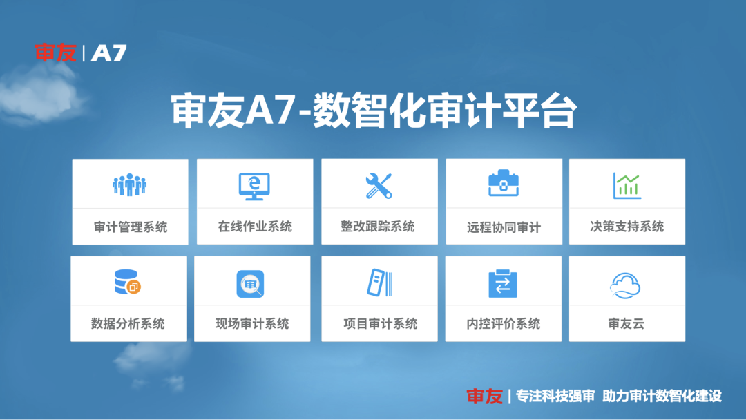 1. 2020年3月20日,集用友審計15年功力于一身的新一代產品“審友A7--遠程協同審計信息化集成平臺”首發,到2021年4月28日“審友A7.5V--全場景一體化審計信息化平臺”升級,再到2022年4月22日“審友A7.6V--數智化審計平臺”全面升級,經過三年持續不斷的打磨,審友A7系列產品日趨成熟完善,廣受好評,被譽為“產品線完整、功能強大的審計軟件”!2022年12月“審友A7”參加了用友集團組織的年度開發者大賽,從399個參賽項目中脫穎而出,被評為僅有的兩個“最具商業價值獎”之一!