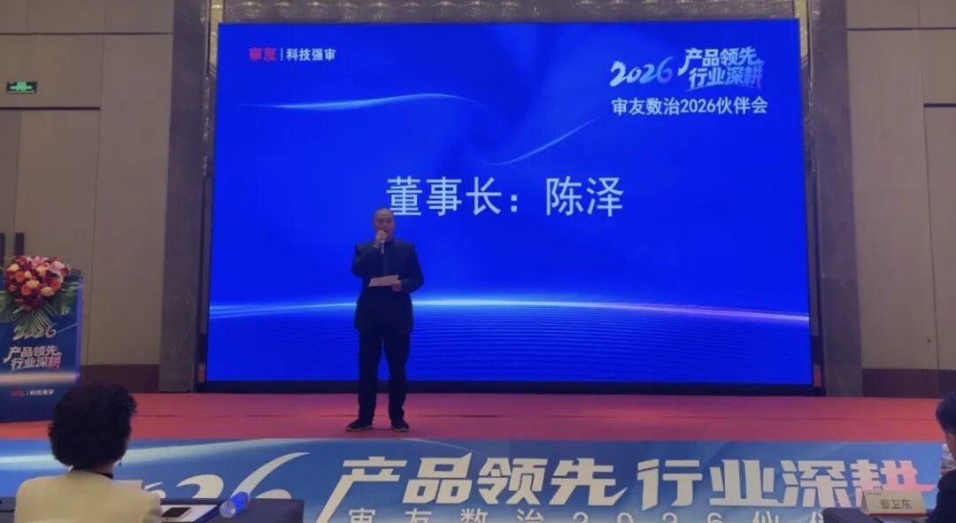 大會伊始,審友數治董事長陳澤登臺致辭,回顧2025年產品創新與行業深耕成果,解讀國家審計數字化、智能化政策紅利,擘畫2026年AI賦能、行業深耕、生態共贏的發展藍圖,傳遞與伙伴同心聚力、資源共享、共拓市場的堅定信心,全場伙伴倍感振奮、共識凝聚。